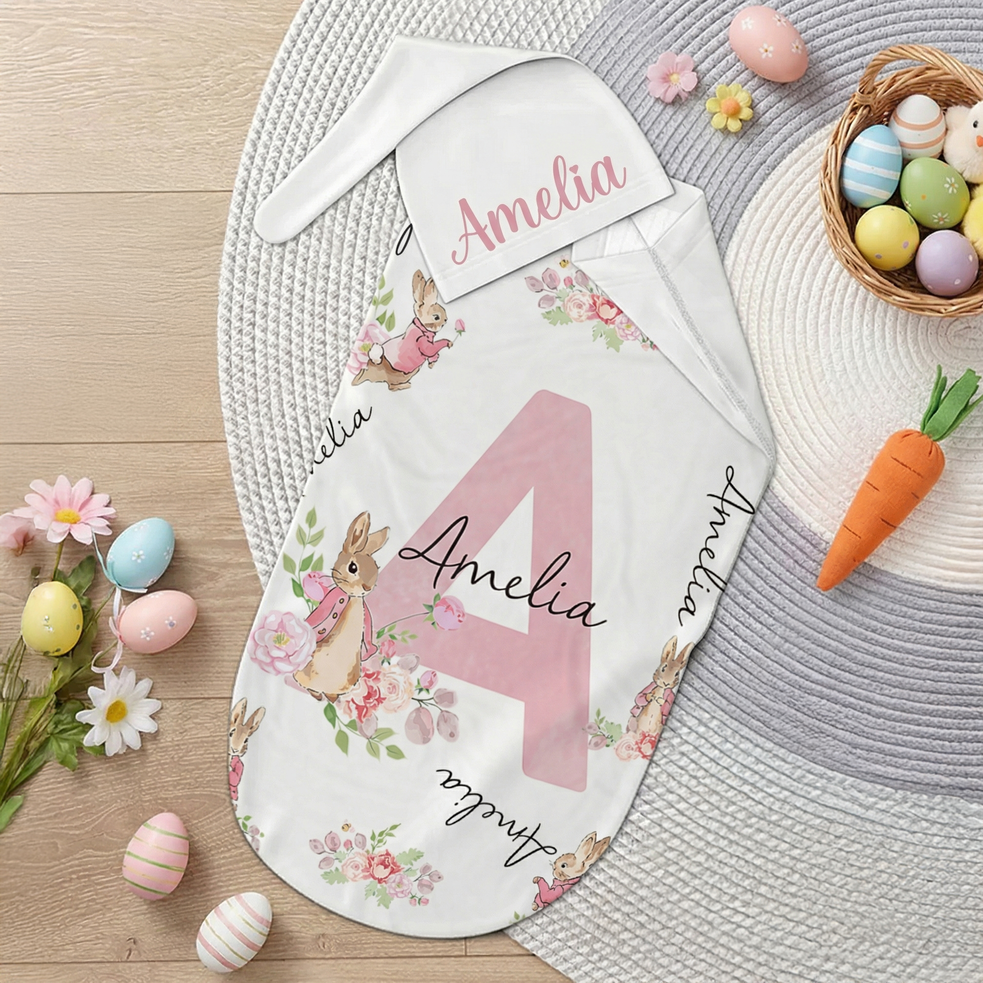 Style Custom Name Peter Rabbit Bunny Alphabet Receiving Blanket with Hat